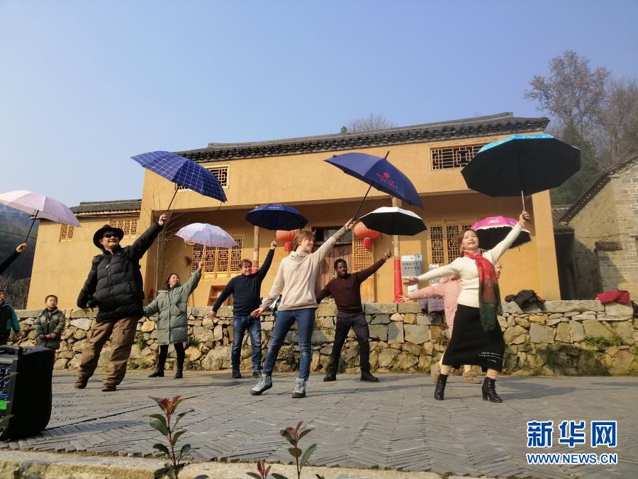 這是2020年12月19日,植國明、肖恩、瑞貝卡·尼什、烏俊杰與村民們一起練習(xí)舞蹈,迎接新年。新華社記者 劉方強(qiáng)攝