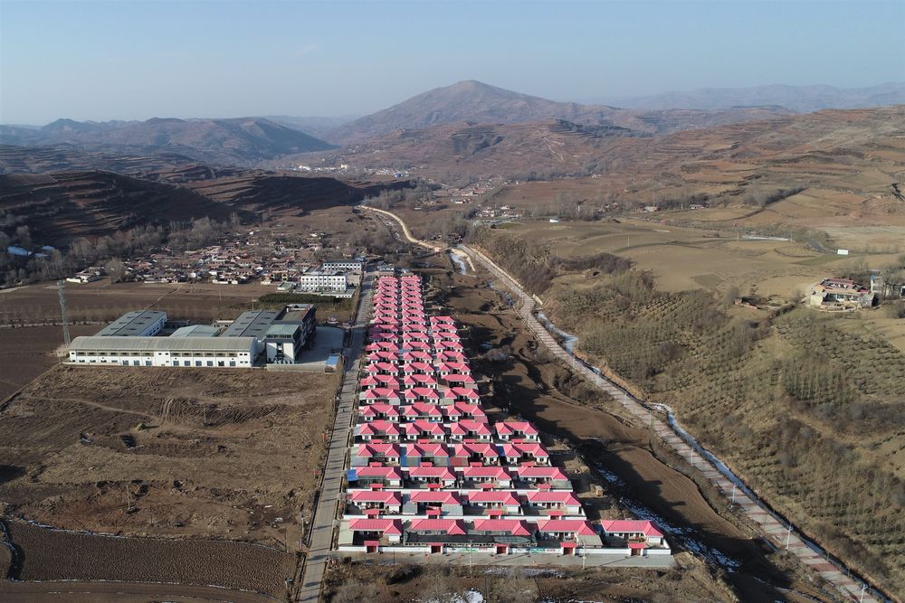 這是2月6日在甘肅省定西市渭源縣元古堆村拍攝的易地扶貧搬遷點(diǎn)(無(wú)人機(jī)照片)。新華社記者 馬希平 攝