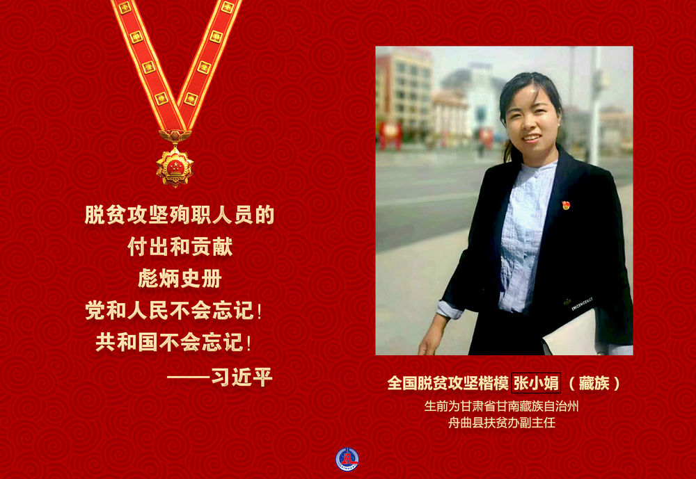 張小娟同志是在習(xí)近平新時代中國特色社會主義思想指引下成長起來的優(yōu)秀共產(chǎn)黨員,是在脫貧攻堅(jiān)一線不懈奮斗的優(yōu)秀青年干部。2019年10月7日,在舟曲縣貧困鄉(xiāng)鎮(zhèn)脫貧攻堅(jiān)驗(yàn)收結(jié)束返回縣城途中因交通事故不幸殉職,年僅34歲。