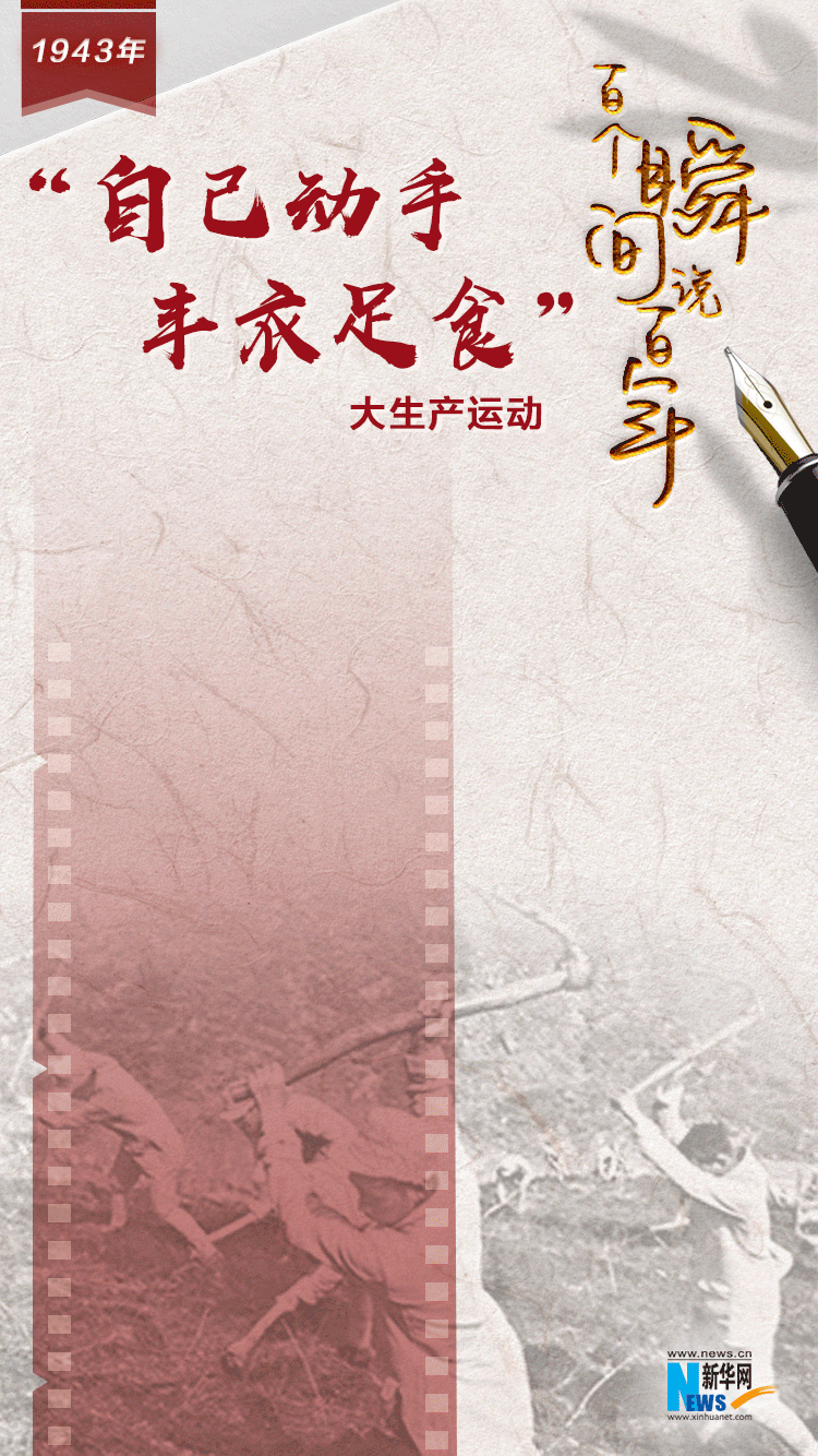 1939年2月,當(dāng)困難剛剛露頭的時候,毛澤東就發(fā)出了“自己動手”的號召。1941年,黨中央再次強調(diào)必須走生產(chǎn)自救的道路。同年春,八路軍第三五九旅開進(jìn)南泥灣實行軍墾屯田。戰(zhàn)士們用歌聲喚醒沉睡的土地,用汗水澆出萬頃良田,使昔日荒涼的南泥灣變成了“糧食堆滿倉,麥田翻金浪,豬牛羊肥壯”的“陜北的好江南”。到1944年,第三五九旅除吃用全部自給外,達(dá)到了“耕一余一”(即耕種一年莊稼,除消耗外,可剩余一年吃的糧食),成為全軍大生產(chǎn)運動的模范。一曲動人的《南泥灣》流傳至今,久唱不衰。