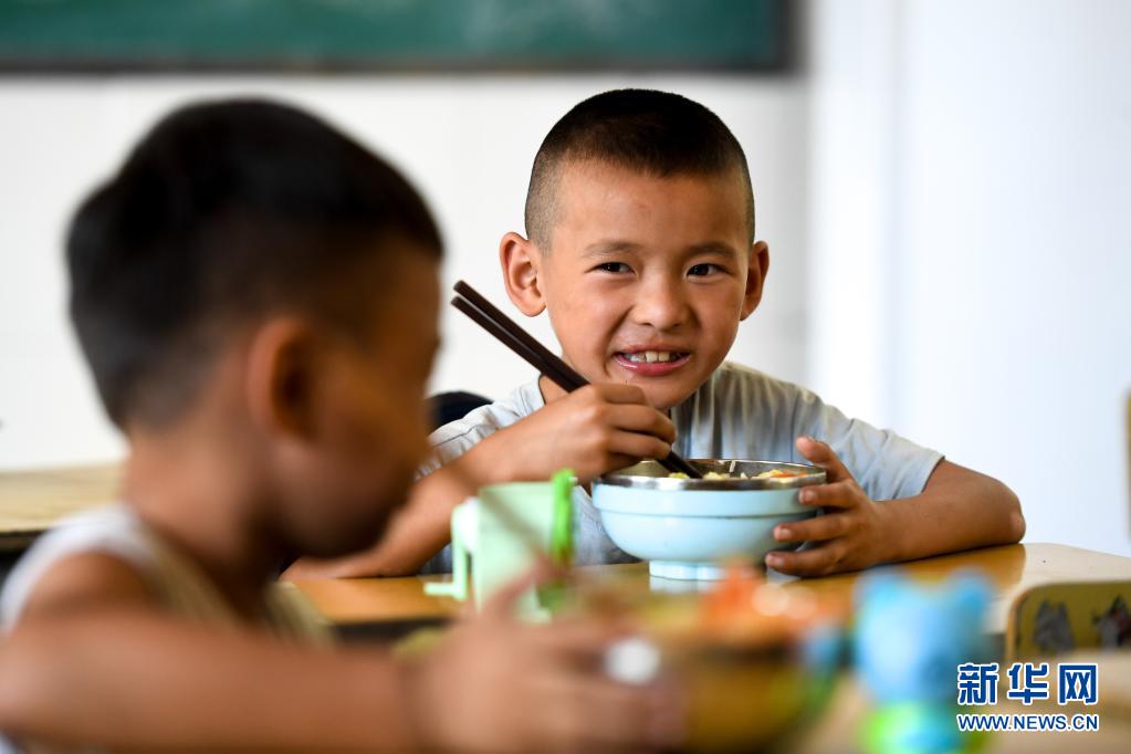 湖南省湘西土家族苗族自治州花垣縣十八洞小學(xué)的學(xué)生在教室吃午飯(2019年9月5日攝)。新華社記者 陳澤國(guó) 攝