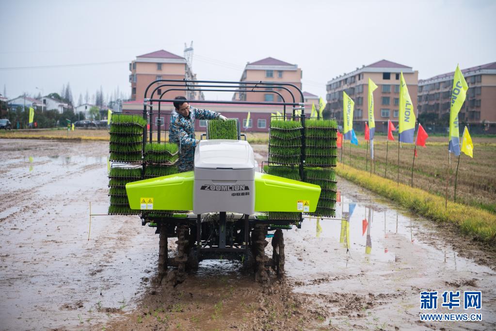在湖南省益陽(yáng)市沅江市草尾鎮(zhèn)沅江現(xiàn)代農(nóng)業(yè)技術(shù)研發(fā)基地,工作人員演示插秧機(jī)操作(2021年3月2日攝)。新華社記者 陳思汗 攝