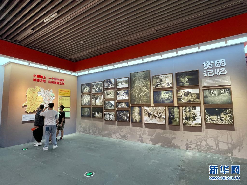 參觀者在湖南省長(zhǎng)沙市觀看湖南省脫貧攻堅(jiān)大型成就展(2021年5月11日攝)。新華社記者 蘇曉洲 攝
