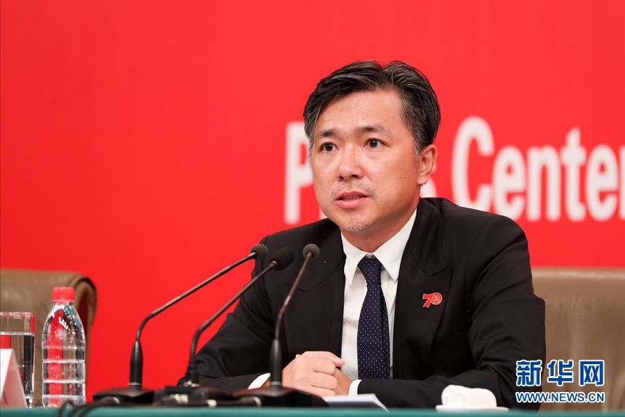 9月25日,慶祝中華人民共和國成立70周年活動(dòng)新聞中心在北京梅地亞中心二層新聞發(fā)布廳舉辦第二場專題集體采訪活動(dòng)。圖為群眾游行總導(dǎo)演、北京師范大學(xué)藝術(shù)與傳媒學(xué)院副院長肖向榮介紹相關(guān)情況。新華網(wǎng)記者 焦鵬 攝