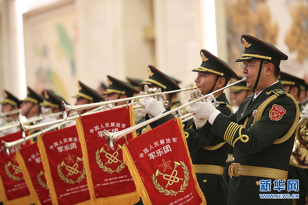 ??? 9月29日上午10時(shí),中華人民共和國國家勛章和國家榮譽(yù)稱號(hào)頒授儀式在人民大會(huì)堂隆重舉行。圖為頒授儀式現(xiàn)場的中國人民解放軍軍樂團(tuán)。新華網(wǎng) 陳杰 攝