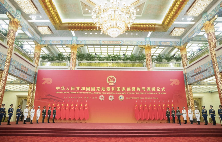國家勛章和國家榮譽(yù)稱號頒授儀式29日上午在北京人民大會堂金色大廳隆重舉行。