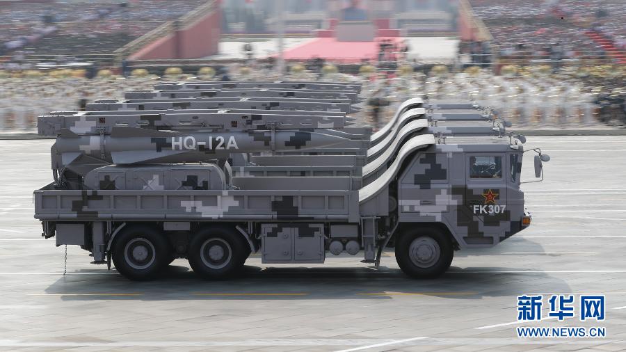 新華社北京10月1日電(記者張玉清、張汨汨)8輛紅旗-12A地空導(dǎo)彈發(fā)射車和4個紅旗-6A彈炮系統(tǒng)火力單元組成的地空導(dǎo)彈第2方隊,10月1日通過天安門接受檢閱。方隊領(lǐng)隊是朱瑞少將、董玉江少將。