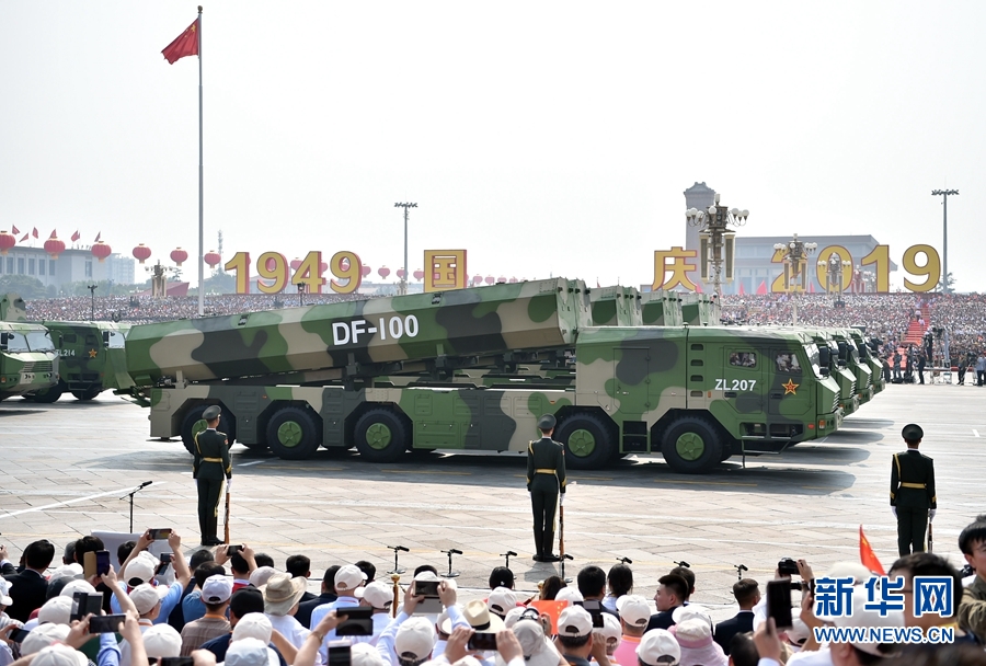 10月1日上午,慶祝中華人民共和國(guó)成立70周年大會(huì)在北京天安門(mén)廣場(chǎng)隆重舉行。這是長(zhǎng)劍-100巡航導(dǎo)彈方隊(duì)。新華社記者 李鑫 攝