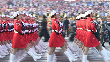 當(dāng)天上午10時許,雄壯的樂曲聲中,習(xí)近平乘坐紅旗牌檢閱車,沿長安街向東,依次檢閱了地面徒步方隊和裝備方隊。
