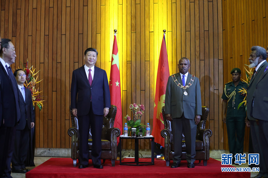 11月16日,國(guó)家主席習(xí)近平在莫爾茲比港會(huì)見(jiàn)巴布亞新幾內(nèi)亞總督達(dá)達(dá)埃。 新華社記者 鞠鵬 攝