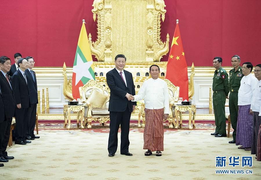 當?shù)貢r間1月17日下午,國家主席習近平在內(nèi)比都同緬甸總統(tǒng)溫敏會談。 新華社記者 饒愛民 攝