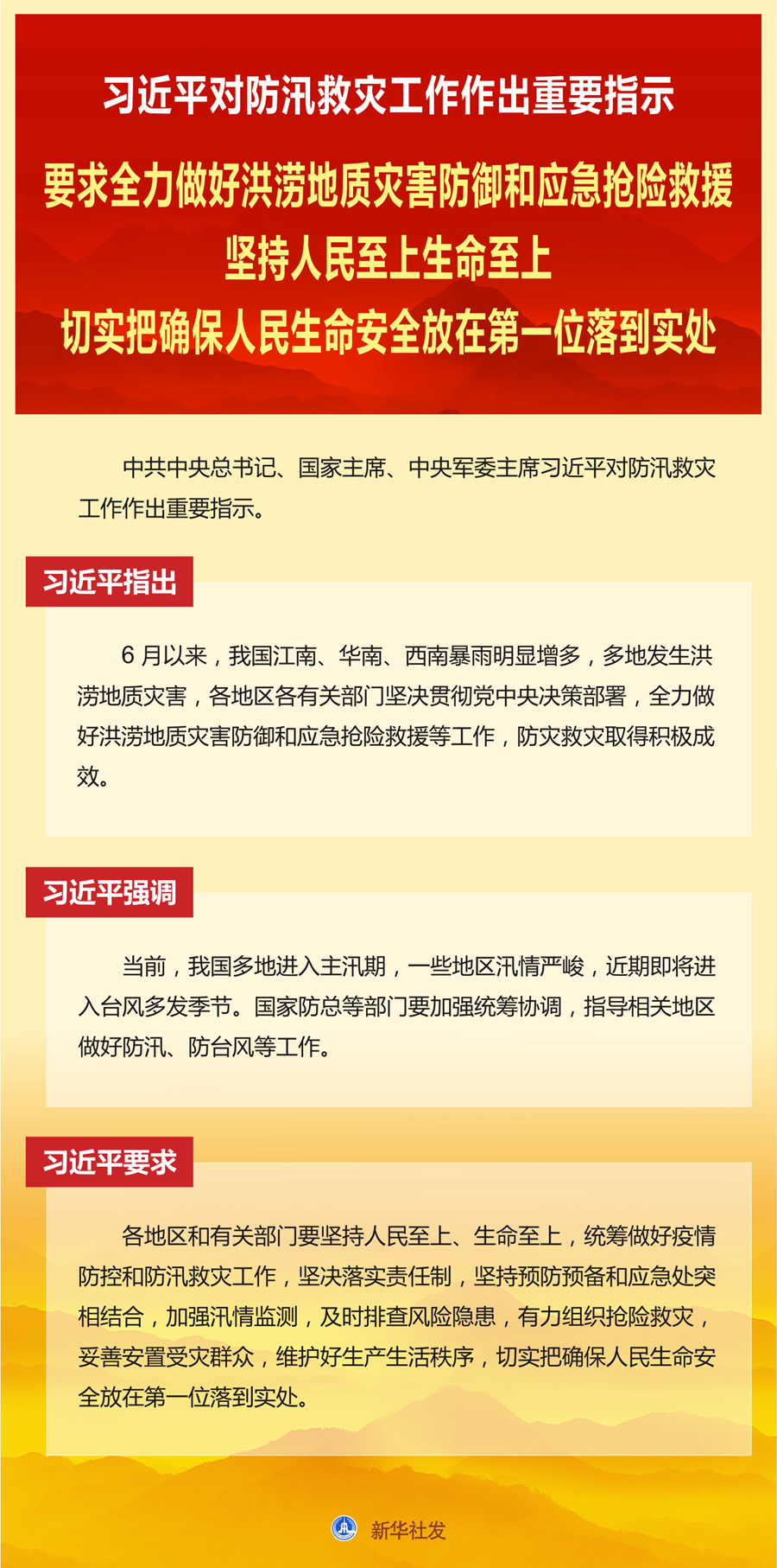 習(xí)近平對(duì)防汛救災(zāi)工作作出重要指示