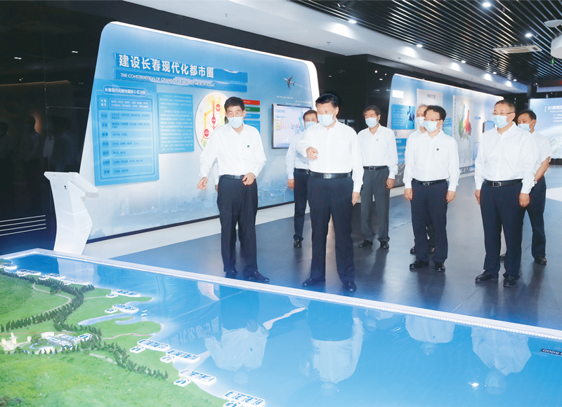 2020年7月22日至24日,中共中央總書記、國家主席、中央軍委主席習(xí)近平在吉林省考察。這是7月23日下午,習(xí)近平考察長春新區(qū)規(guī)劃展覽館,了解新區(qū)規(guī)劃建設(shè)情況。 新華社記者 王曄/攝