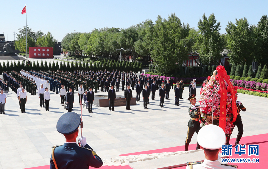 新華社北京9月3日電(記者張曉松、朱基釵)銘記歷史緬懷先烈,珍愛和平開創(chuàng)未來(lái)。9月3日上午,紀(jì)念中國(guó)人民抗日戰(zhàn)爭(zhēng)暨世界反法西斯戰(zhàn)爭(zhēng)勝利75周年向抗戰(zhàn)烈士敬獻(xiàn)花籃儀式在中國(guó)人民抗日戰(zhàn)爭(zhēng)紀(jì)念館舉行。黨和國(guó)家領(lǐng)導(dǎo)人習(xí)近平、李克強(qiáng)、栗戰(zhàn)書、汪洋、王滬寧、趙樂際、韓正、王岐山,同各界代表一起出席儀式。