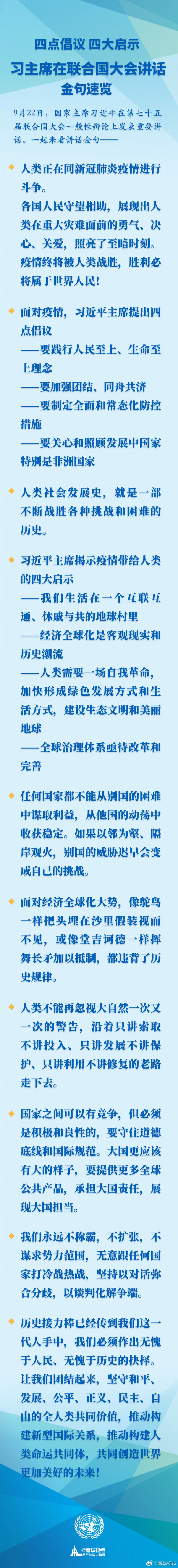四點倡議 四大啟示 習(xí)主席在聯(lián)合國大會講話金句速覽