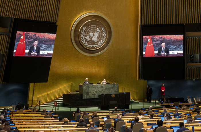 9月22日,國(guó)家主席習(xí)近平在第七十五屆聯(lián)合國(guó)大會(huì)一般性辯論上發(fā)表重要講話。新華社記者 鞠鵬 攝