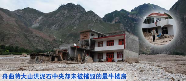 舟曲特大山洪泥石中央?yún)s未被摧毀的最牛樓房