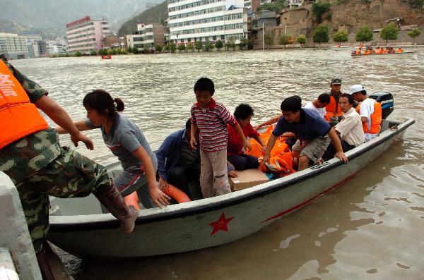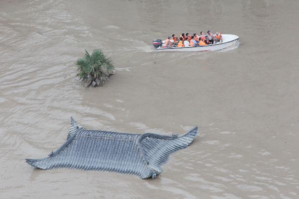 沖鋒舟為舟曲受災(zāi)群眾開(kāi)辟水上通道
