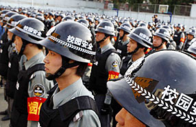天津中小學(xué)開學(xué) 校園保安帶4斤裝備上崗