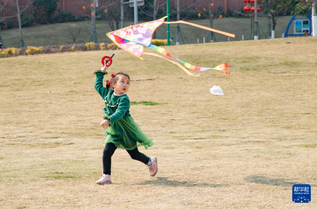春光明媚,人们踏青出游,放飞风筝,乐享春日美好时光。