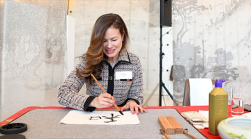 5月11日,游客在陕西历史博物馆唐代壁画珍品馆内临摹壁画。