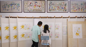 6月16日,观众参观伏羲女娲绢画。