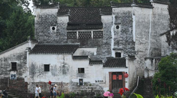 参观者在西安半坡博物馆里观看彩陶盆(8月9日摄)。