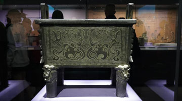 11月24日,在香港会议展览中心,观众拍摄清雍正青花釉里红云海腾龙纹天球瓶。
