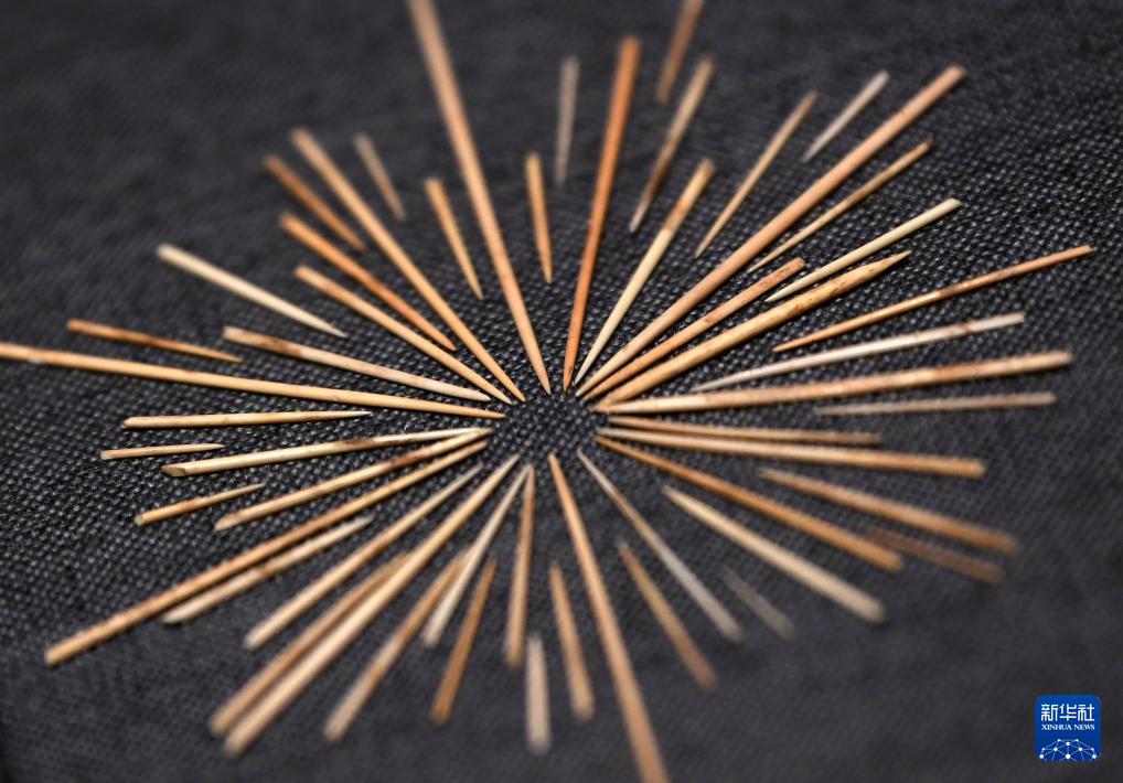 这是11月29日拍摄的石峁博物馆展出的骨针。