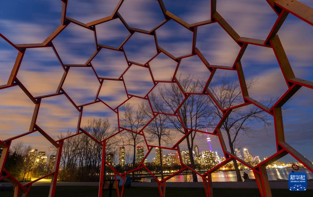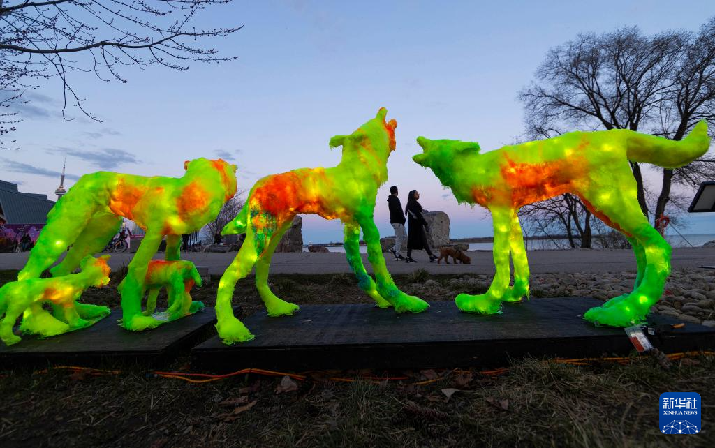 这是4月15日在加拿大多伦多艺术灯光秀上拍摄的展出作品。新华社发(邹峥摄)