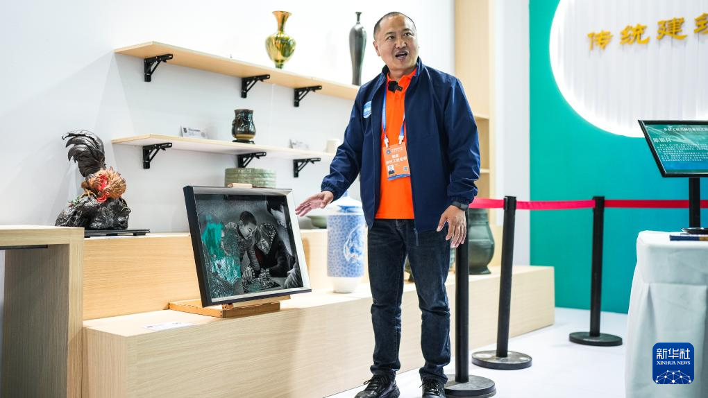 在贵阳举办的第二届全国乡村振兴职业技能大赛上,来自江苏省盐城市的乡村工匠名师陈银付带来了自己的大丰瓷刻作品,吸引了观众的目光。