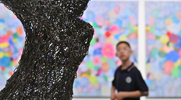 这是6月12日在香港艺术馆“情书——跨越虚白时空的不朽情怀”展览上拍摄的刘作筹的雕像。新华社记者 朱炜 摄