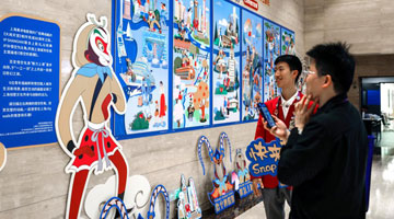 11月20日,参观者在观看古代希腊雕像艺术对古代中国雕像艺术影响的介绍。
