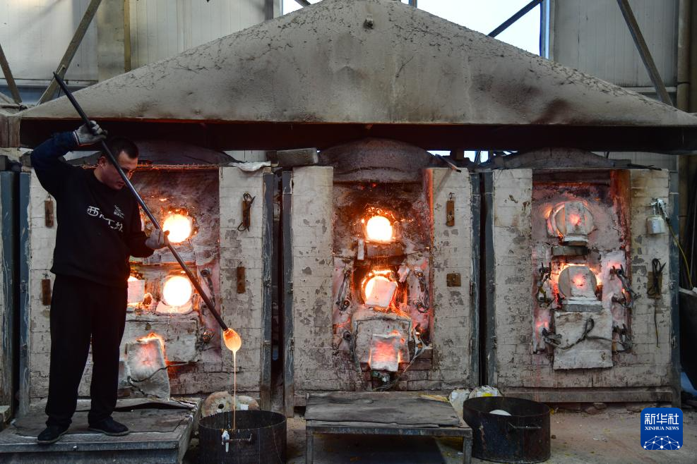 1月9日,在淄博市博山区的西冶工坊,工匠在加工琉璃工艺品。