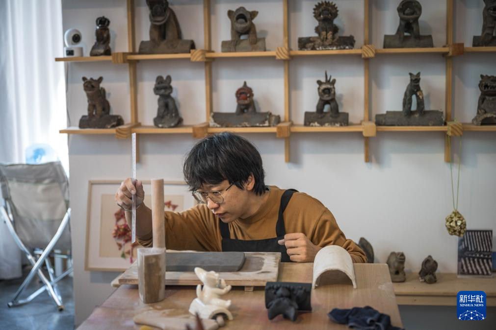 自那时起,钻进老城区的市集、工地,寻找瓦猫的踪迹,便成了他生活中的重要内容。2019年,他创立了“心房瓦猫博物馆”,开展瓦猫制作、非遗体验、瓦猫安放仪式、传统村落游学等活动。