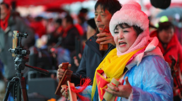 3月2日,人们在江苏省连云港市连云区表演民俗节目。