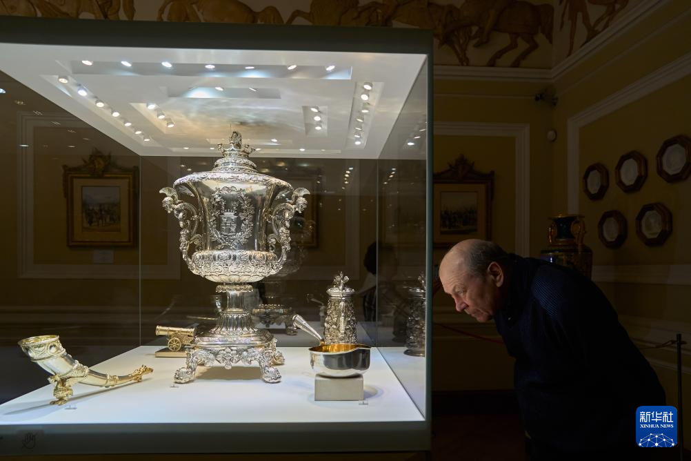 4月7日,一名男子在俄罗斯圣彼得堡的法贝热博物馆参观。