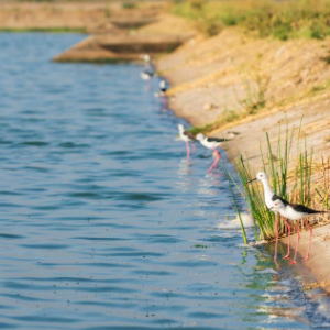 在肯尼亚内罗毕,一群黑翅长脚鹬在丹多拉污水处理厂污水处理池旁活动(2月6日摄)。 新华社记者 谢剑飞 摄