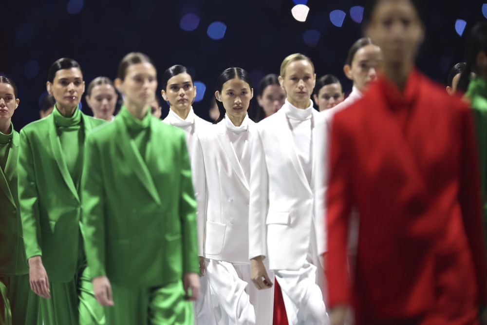 2024年2月4日,在意大利斯坎迪奇,斯坎迪奇队球员朱婷与当地舞龙舞狮表演者和观众在赛后合影。该舞龙舞狮表演队由意大利当地的中国功夫爱好者组成。