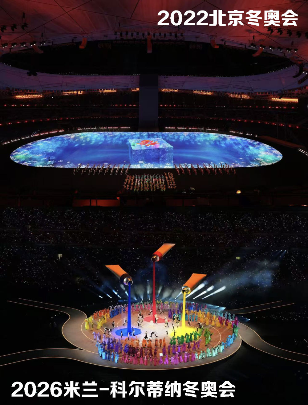 ↑中国代表团在米兰冬奥会开幕式上入场。