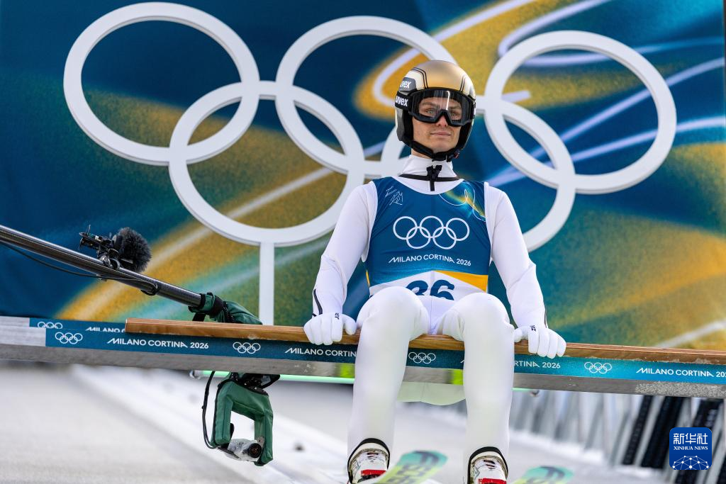2月17日,奥地利选手兰帕特尔在个人大跳台试跳轮中。