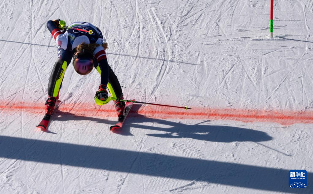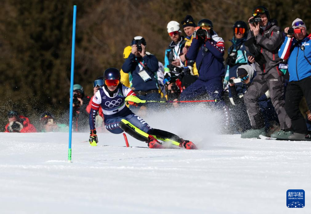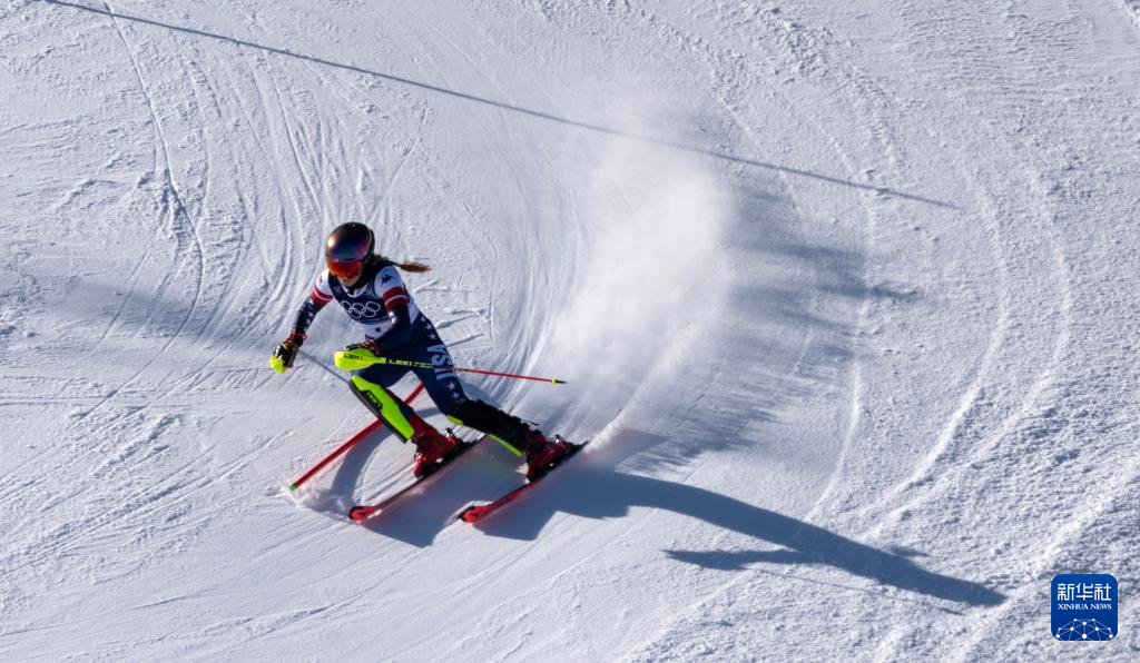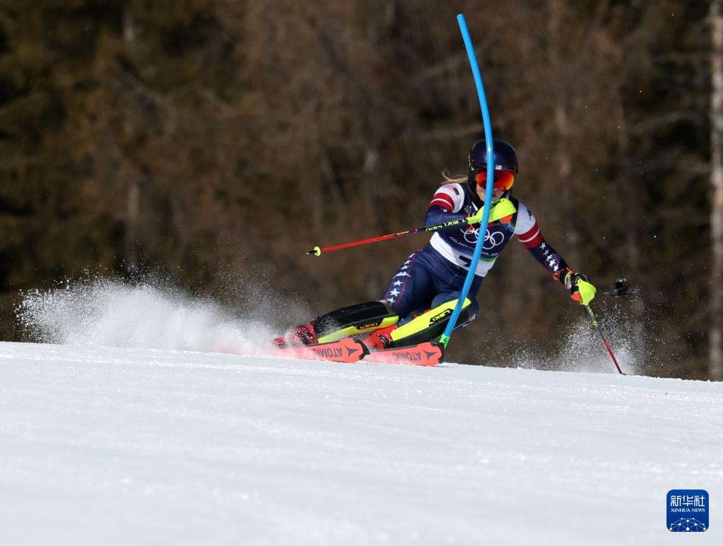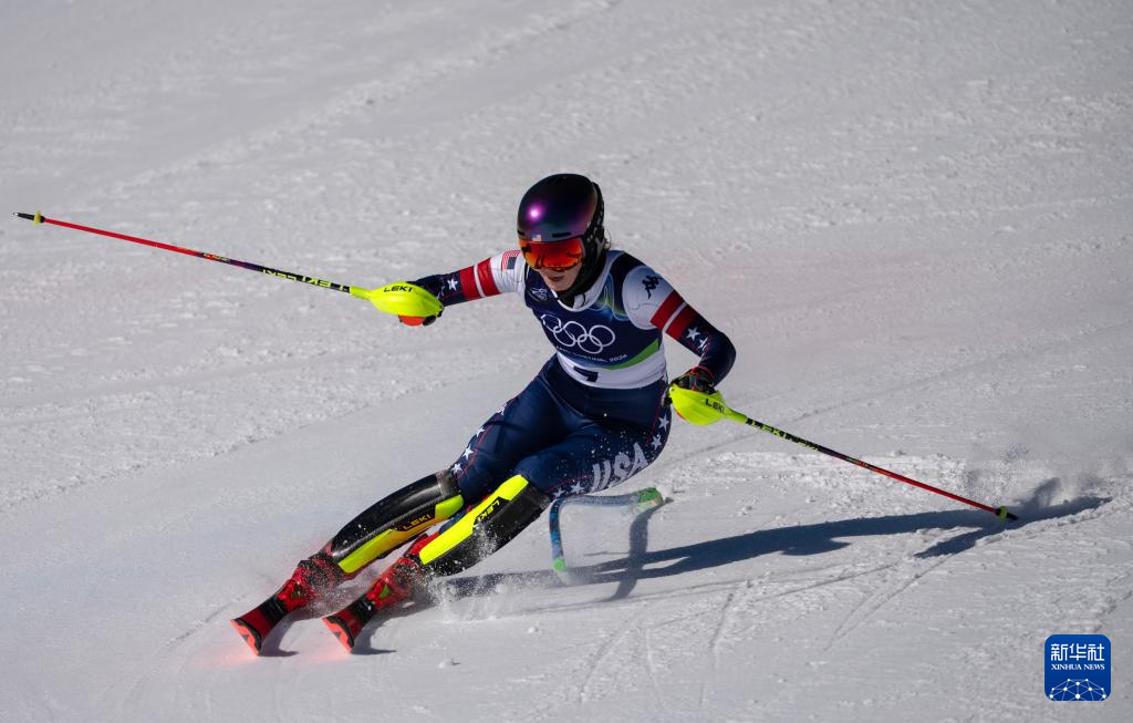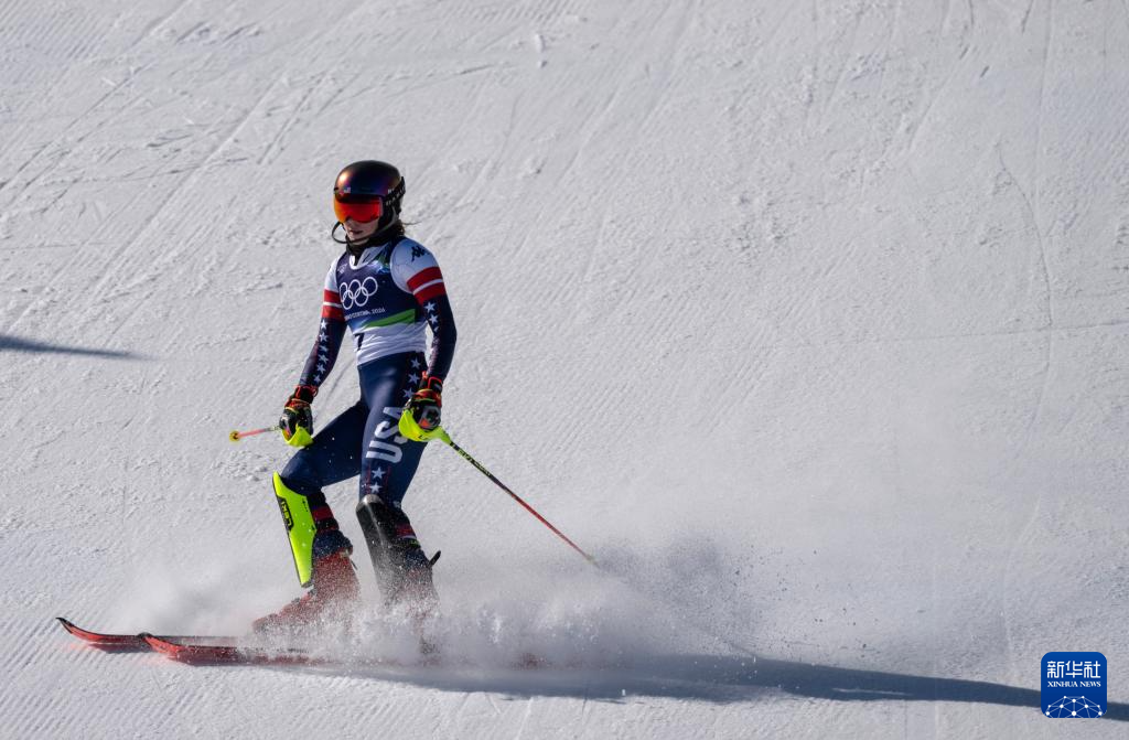 2月18日,美国选手希夫林在第一轮比赛中。她获得冠军。