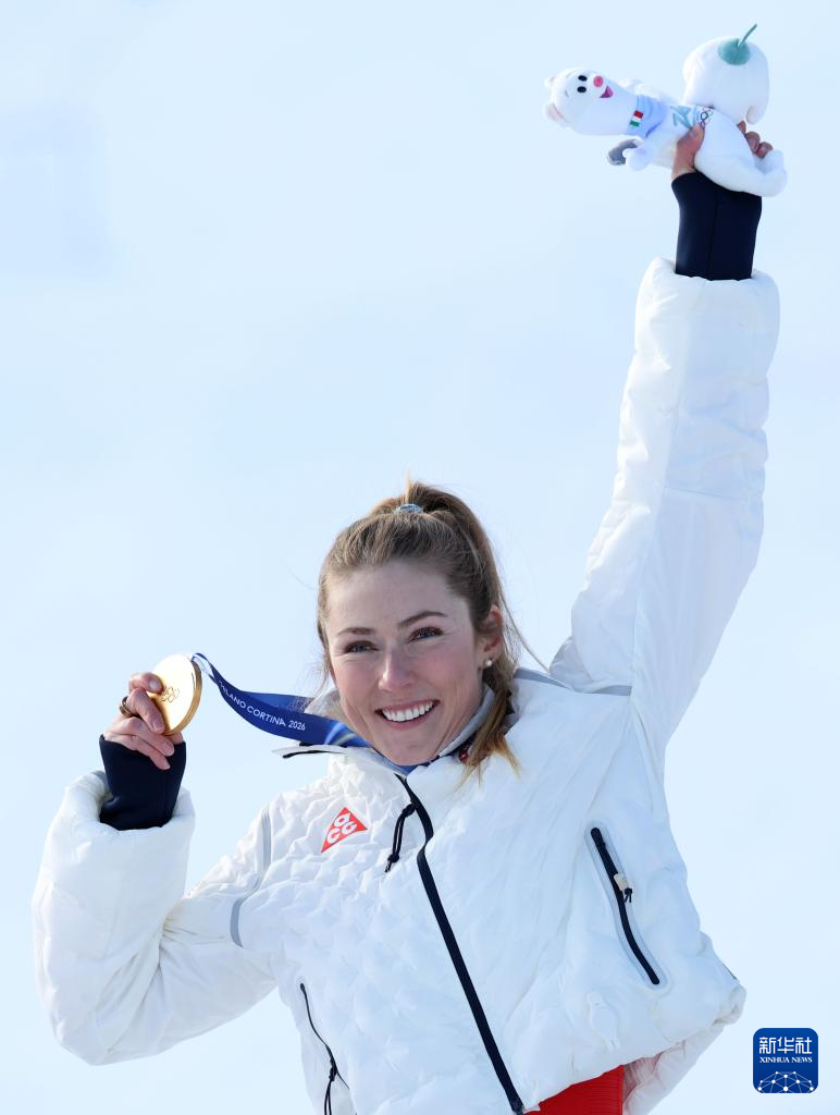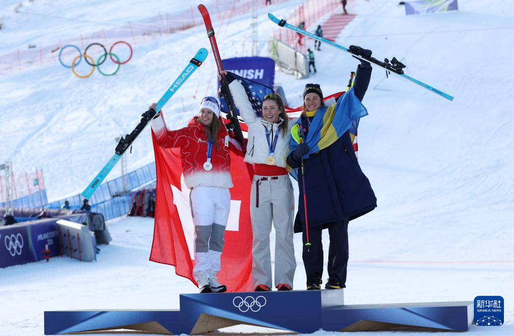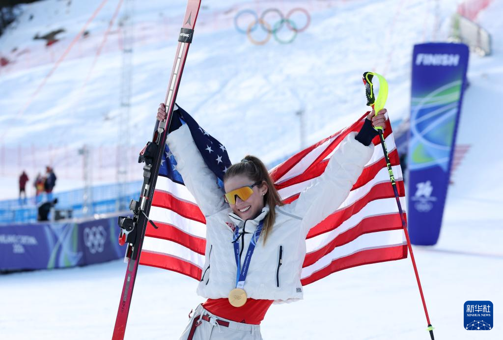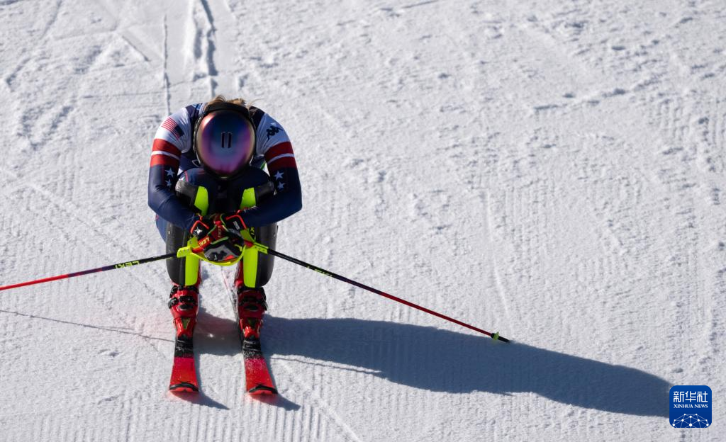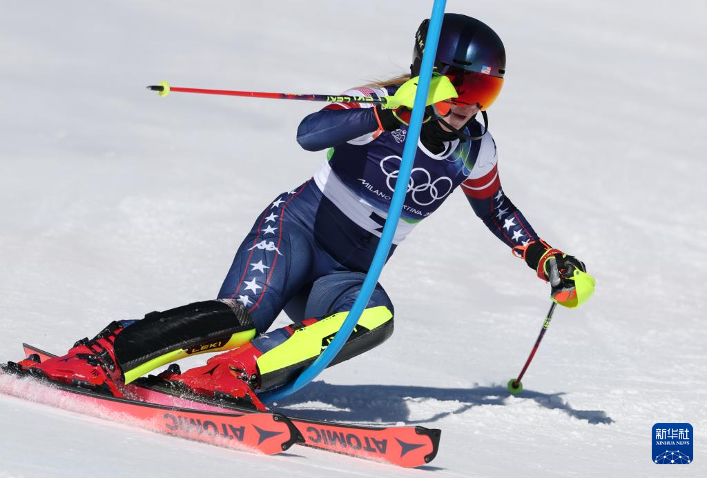2月18日,美国选手希夫林在第一轮比赛中。她获得冠军。