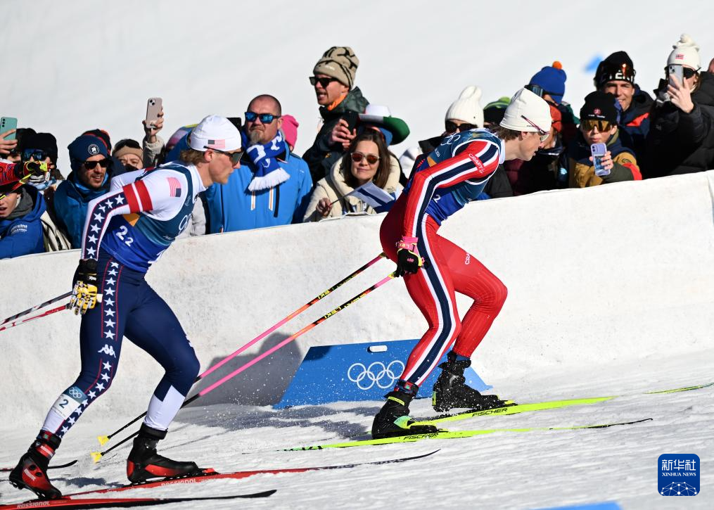 2月18日,挪威队选手克莱博(右一)在比赛中。