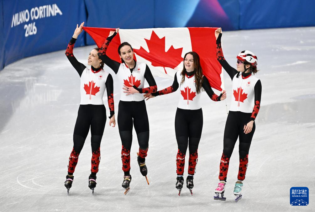 2月18日,加拿大队选手赛后庆祝。