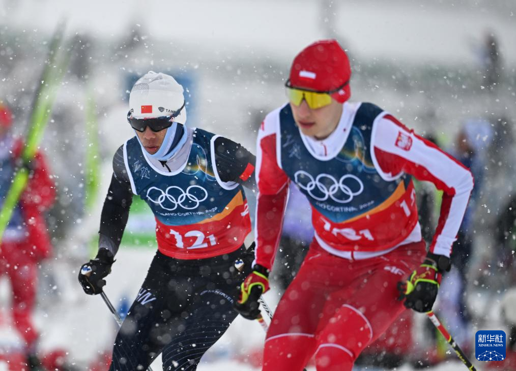 2月19日,中国队选手赵子贺(左)在比赛中。