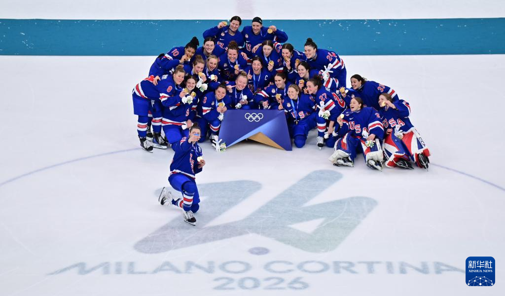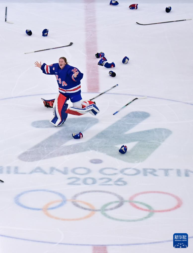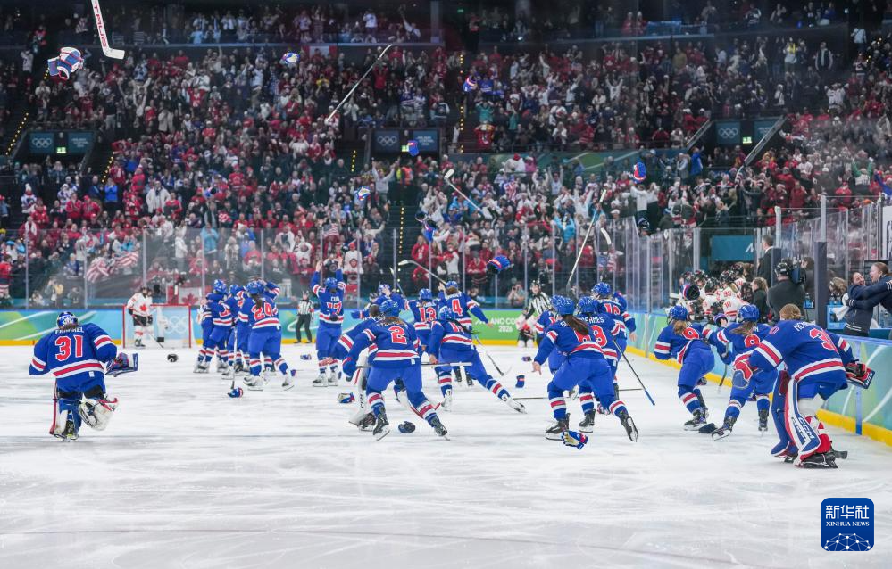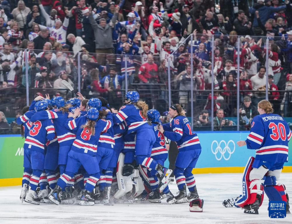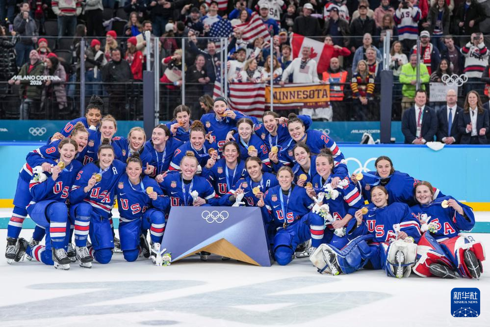 当地时间2月19日,米兰-科尔蒂纳冬奥会冰球项目女子金牌赛在意大利米兰举行,美国队2比1战胜加拿大队,夺得冠军。