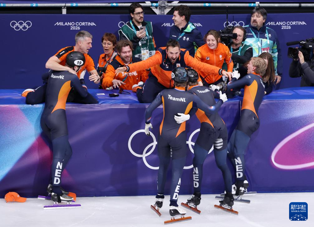 当地时间2月20日,米兰-科尔蒂纳冬奥会短道速滑男子5000米接力A组决赛在意大利米兰举行。