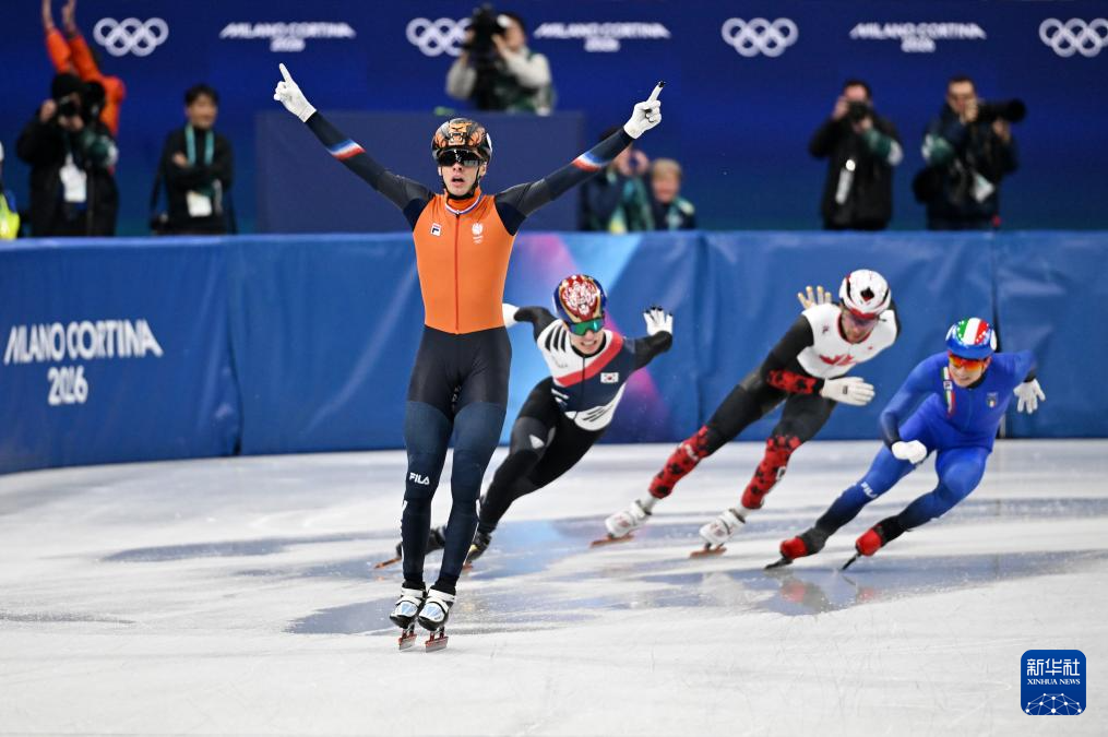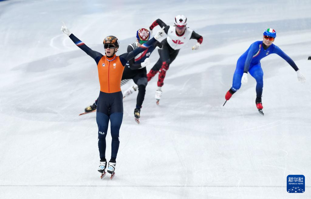 2月20日,荷兰队选手延斯·范特·沃特(右下)在冲线后庆祝。