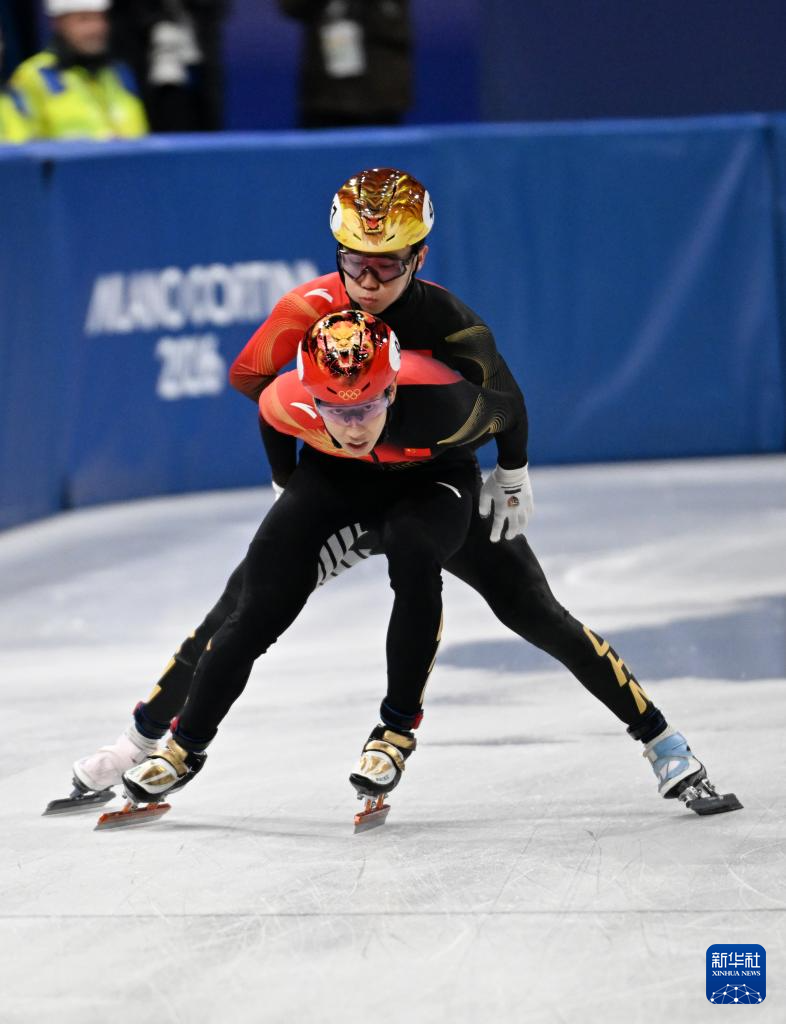 2月20日,中国队选手张柏浩(左上)和林孝埈(右)在比赛中。